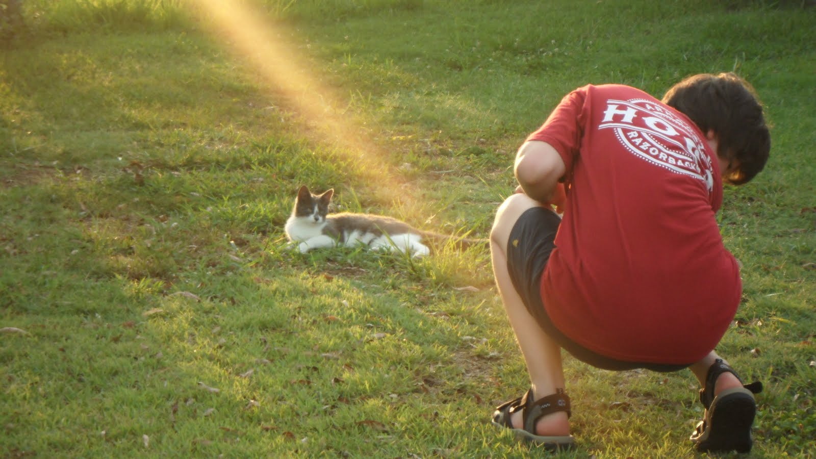 Meanwhile, my daughter has encountered a celestial feline and finds the kitty's glory shining with a spiritual force beyond what her poor eyes can bear.